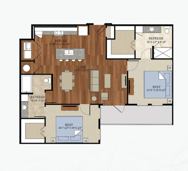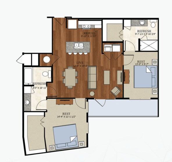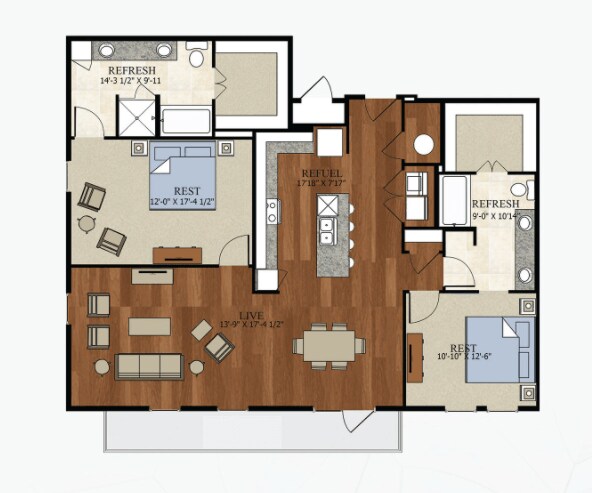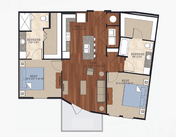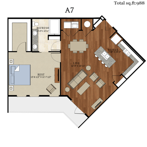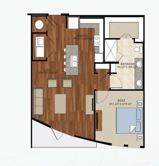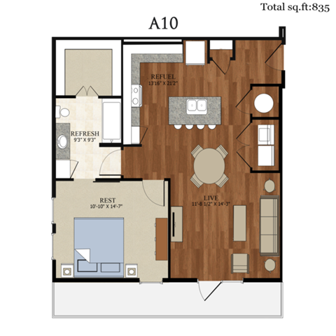 Apartment Model: A3From $1,4901 Bedroom, 1 Bath, 728 sq ftAvailable Now![]()