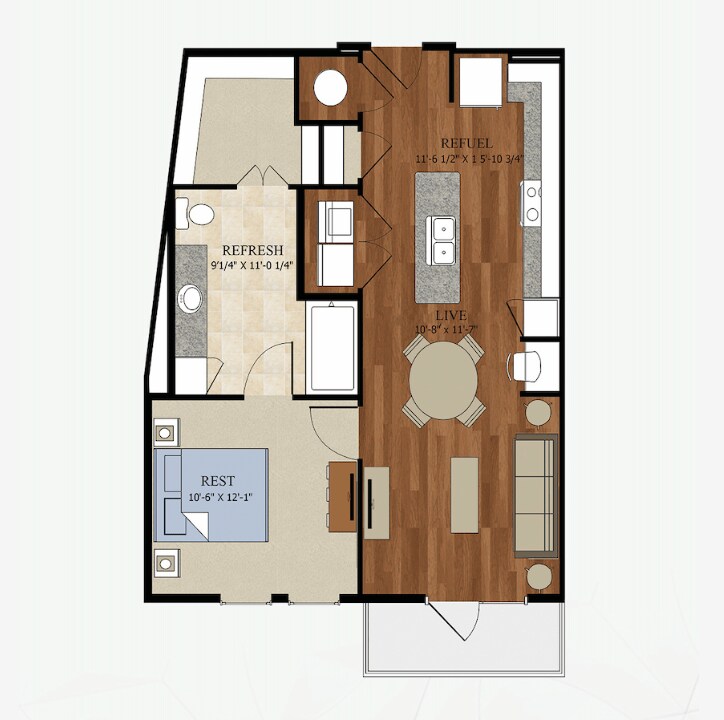 1 Bed, 1 Bath, 728 sq ftAvailable NowModel Gallery