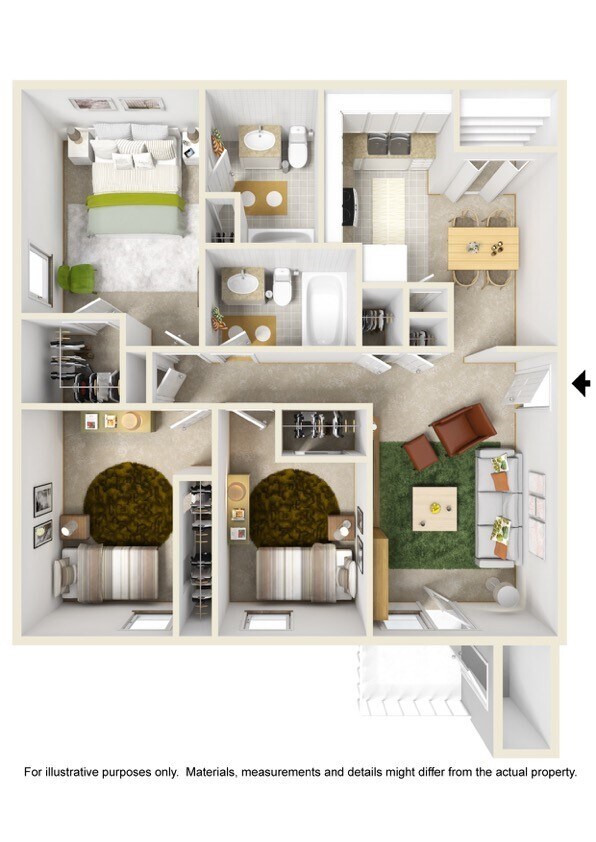 Apartment Model: 3 Bed 2 BathFrom $1,6643 Bedroom, 2 Bath, 1075 sq ftAvailable Now![]()