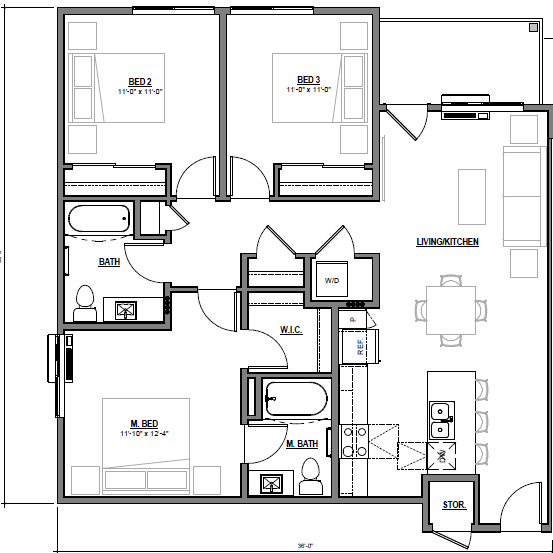 3 Bedroom - Floorplan 2 Apartment Unit: 3202Apartment Model: 3 Beds, 2 baths$1,6593 Bedroom, 2 Bath, 1228 sq ftAvailable Now