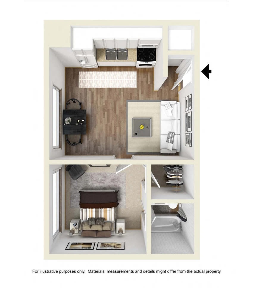 1 Bed, 1 Bath, 466 sq ftModel Gallery
