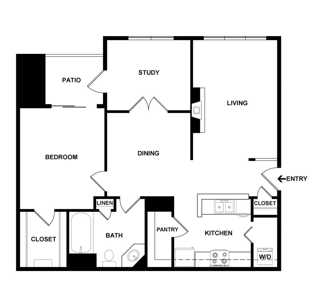 Apartment Model: 1 Bed / 1 Bath / StudyFrom $2,3561 Bedroom, 1 Bath, 911 sq ftAvailable Now![]()