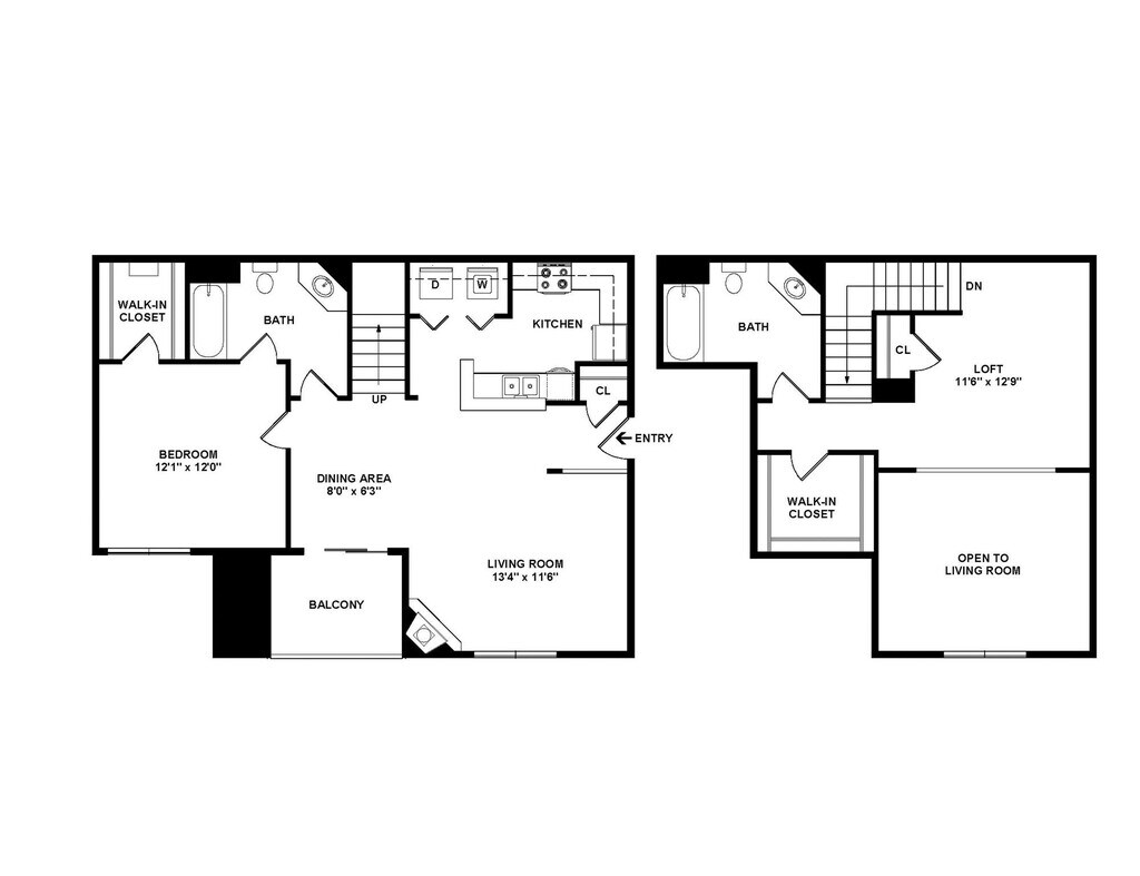 1 Bed / 1 Bath / Loft - Floorplan 2 ![]()
