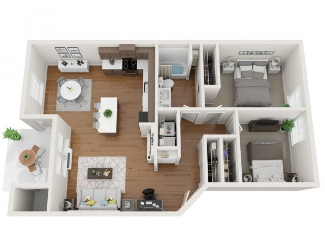 Apartment Model: IndigoFrom $1,8452 Bedroom, 1 Bath, 1013-1026 sq ftAvailable NowFloorplansPhotos![]()
