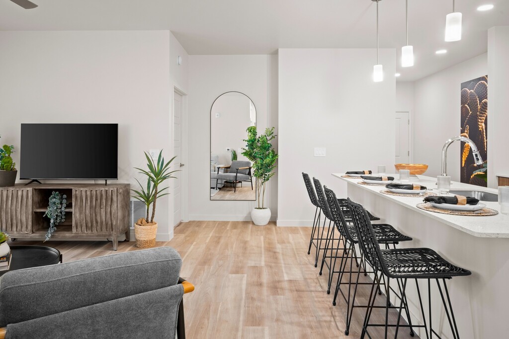 Acero Harvest Station in Queen Creek, AZ offers one, two, and three bedroom apartments with modern finishes like quartz countertops, stainless steel appliances, and open-concept layouts. Each home includes a washer and dryer, private patio, and covered parking. The community features a resort-style pool and hot tub, fitness center, dog park, BBQ area, and EV charging stations. Located at Riggs and Gary Road, you'll have easy access to Loop 202, Banner Ironwood Medical Center, and Phoenix-Mesa Gateway Airport. Nearby, enjoy local favorites like Queen Creek Olive Mill, San Tan Mountain Regional Park, and plenty of shopping and dining options.