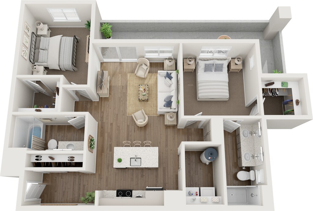 Azure - Floorplan 2 Apartment Unit: 21-2149Apartment Model: AzureFrom $1,7251 Bedroom, 1 Bath, 835 sq ftAvailable Now2 Bedrooms