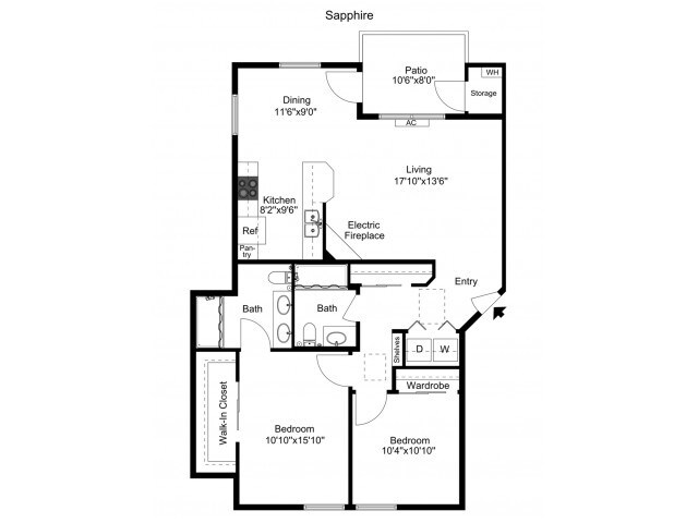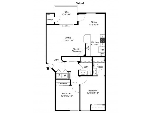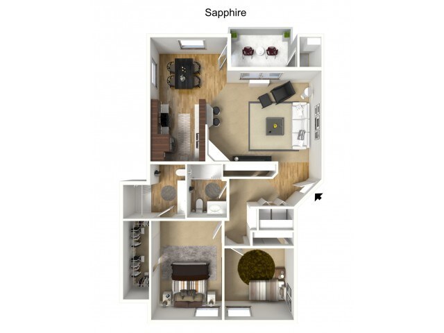 Oxford - Floorplan 3 Apartment Unit: N-140Apartment Model: OxfordFrom $1,9052 Bedroom, 2 Bath, 1014 sq ftAvailable NowSapphire
