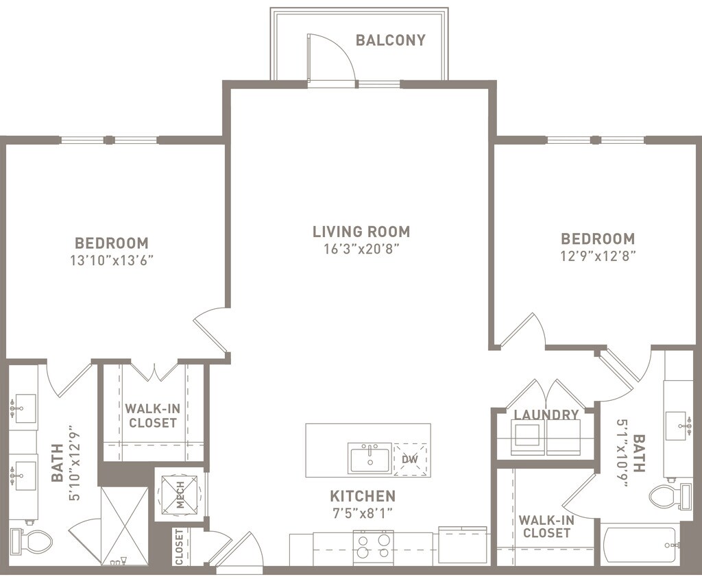 1 Bed, 1 Bath, 1063 sq ftAvailable NowLargest 1 BedroomThis is the largest 1 Bedroom at this PropertyModel Gallery
