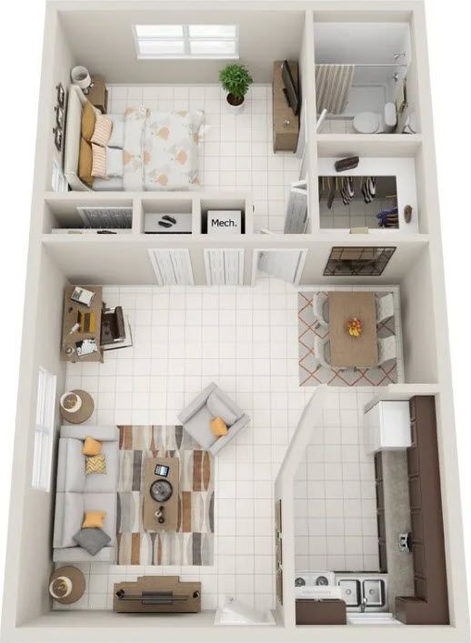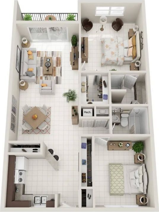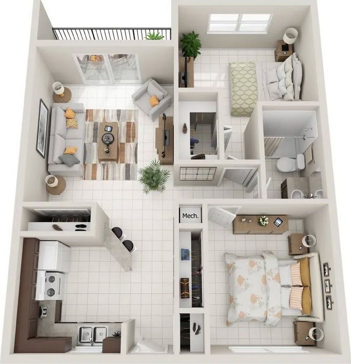 2 Beds, 1 Bath, 875 sq ftModel Gallery