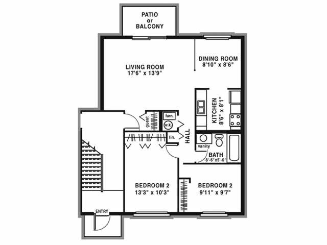 Apartment Model: Two Bedroom One and a Half Bath2 Bedroom, 1.5 Bath, 961-1024 sq ftUnavailable![]()