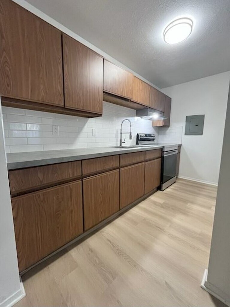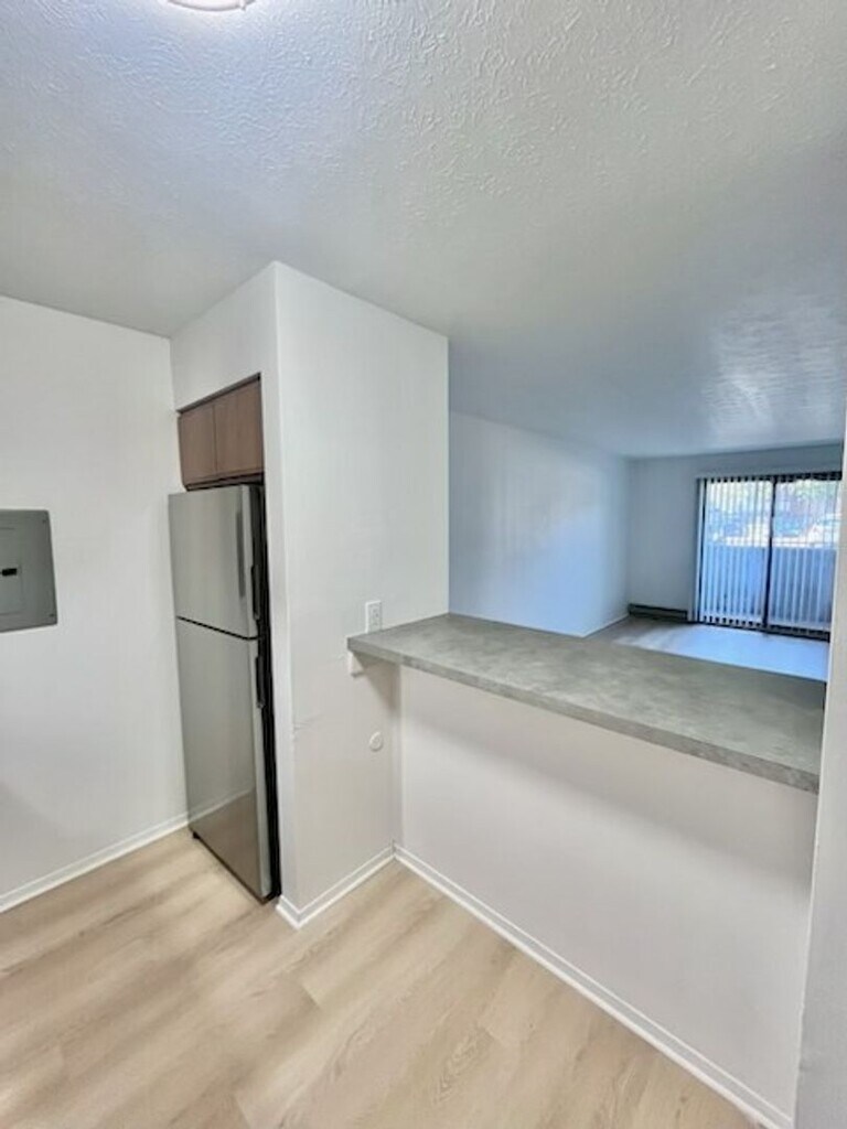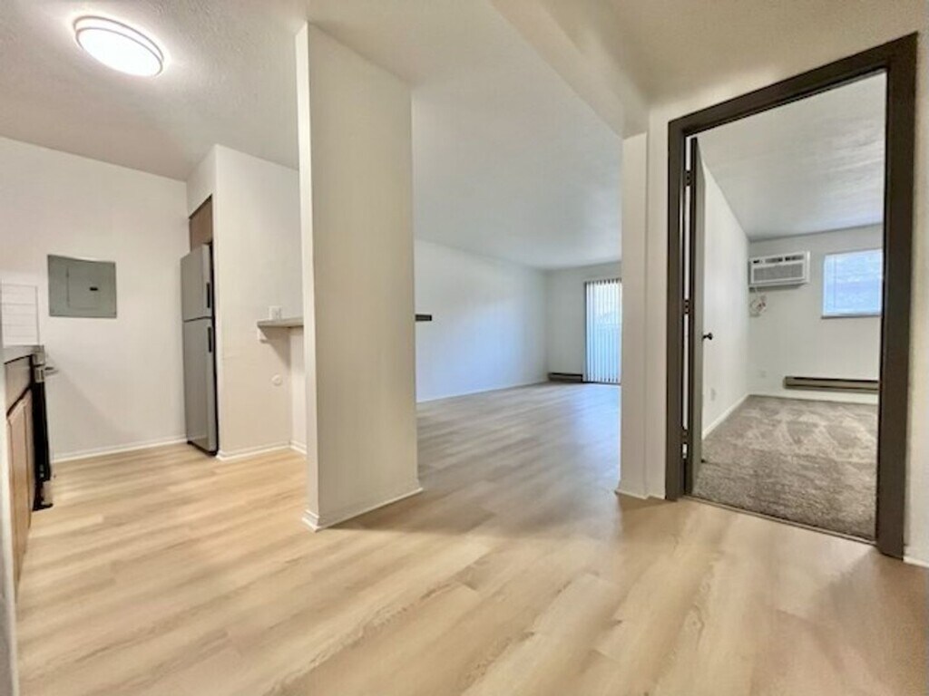 Remodeled one-bedroom one-bathroom apartment The kitchen updates include stainless steel appliances (fridge and stove) solid quartz countertops, eat-in peninsula with bar-stool height seating, subway tile backsplash, deep, double kitchen sinks with spray hose and nozzle, and garbage disposal. The bedrooms have plush carpet - all other areas have gorgeous LVP flooring. There is LED lighting throughout the building hallways and apartments. Comfort-height toilet, refinished bathtubs with new brushed nickel hardware and large walk-in closets. Ground floor apartments have a spacious patio and the second and third floor apartments have a balcony just off the living room. **Unit finishes and upgrades are subject to variations. Individual units may have different updates and design features** Please take note of the following details: - A $75.00 admin fee per month covers water, sewer, trash, and gas for hot water. - $25.00 pet rent per month, per pet (1 dog limit - *breed and weight restrictions apply). - A $250.00 one-time non-refundable pet fee. - $40.00 application fee. - Tenants are responsible for enrolling electric and cable (optional) in their name. - Liability insurance is required. You may use AppFolio or your own insurance company