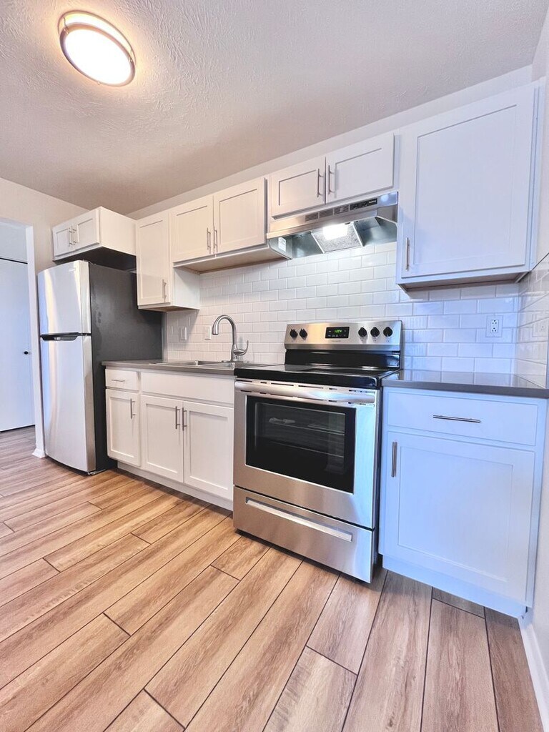 Remodeled one-bedroom one-bathroom apartment with private entry. The kitchen updates include stainless steel fridge and stove, solid quartz countertops, eat-in peninsula with bar-height seating, new cabinets, subway tile backsplash, deep kitchen sink with spray hose and nozzle, and garbage disposal. Large kitchen pantry. The bedrooms have plush carpet - all other areas have LVP flooring. LED lighting throughout. Comfort-height toilet, refinished bathtubs with new brushed nickel hardware, updated vanities and large walk-in closets. USB outlet in every room. **Unit finishes and upgrades are subject to variations. Individual units may have different updates and design features** Please take note of the following details: - A $75.00 admin fee per month covers water, sewer, trash, and gas for hot water. - $25.00 pet rent per month, per pet (1 dog limit - *breed and weight restrictions apply). - A $250.00 one-time non-refundable pet fee. - $40.00 application fee. - Tenants are responsible for enrolling electric and cable (optional) in their name. - Liability insurance is required. You may use AppFolio or your own insurance company
