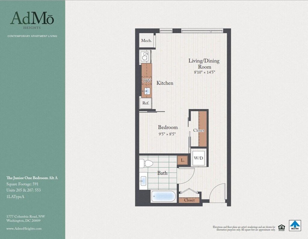 Studio to 1 Bedroom Apartments at AdMo Heights currently range from $1,991 to $2,793