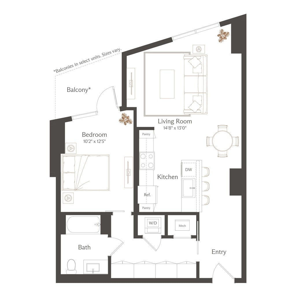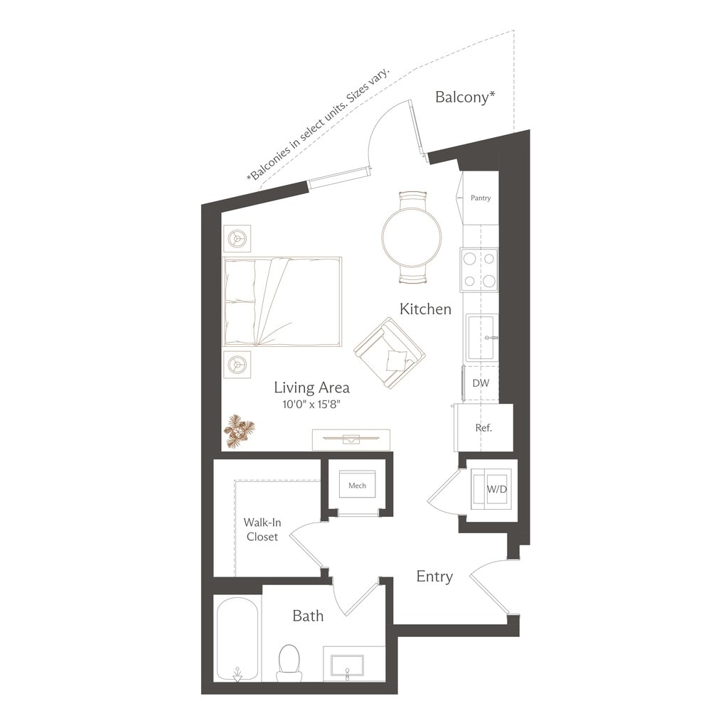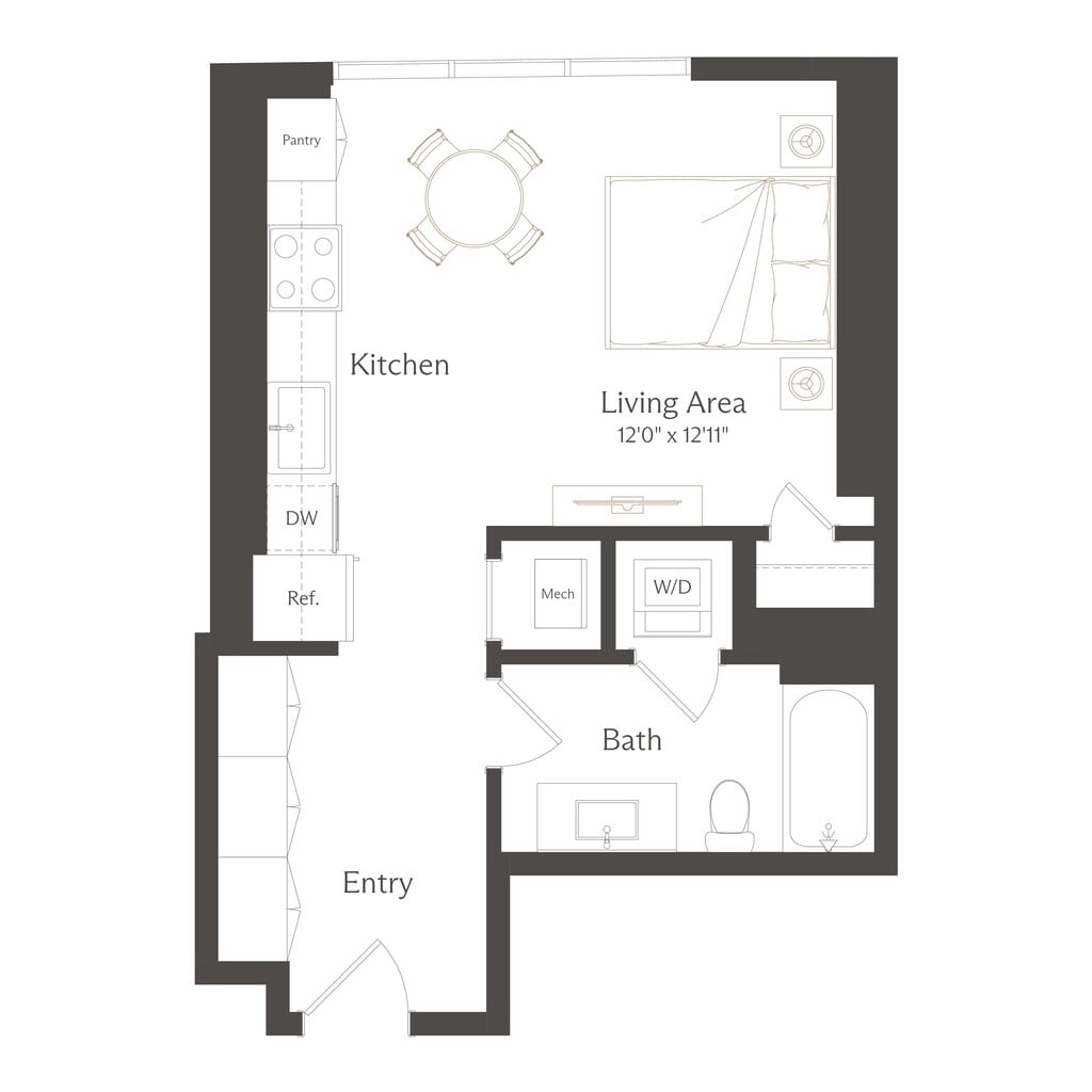 Apartment Model: S1From $1,933Studio, 1 Bath, 515 sq ftAvailable NowFloor plans are artist's rendering. All dimensions are approximate. Actual product and specifications may vary in dimension or detail. Not all features are available in every rental home. Please see a representative for details.