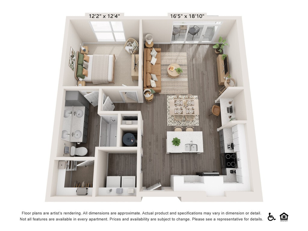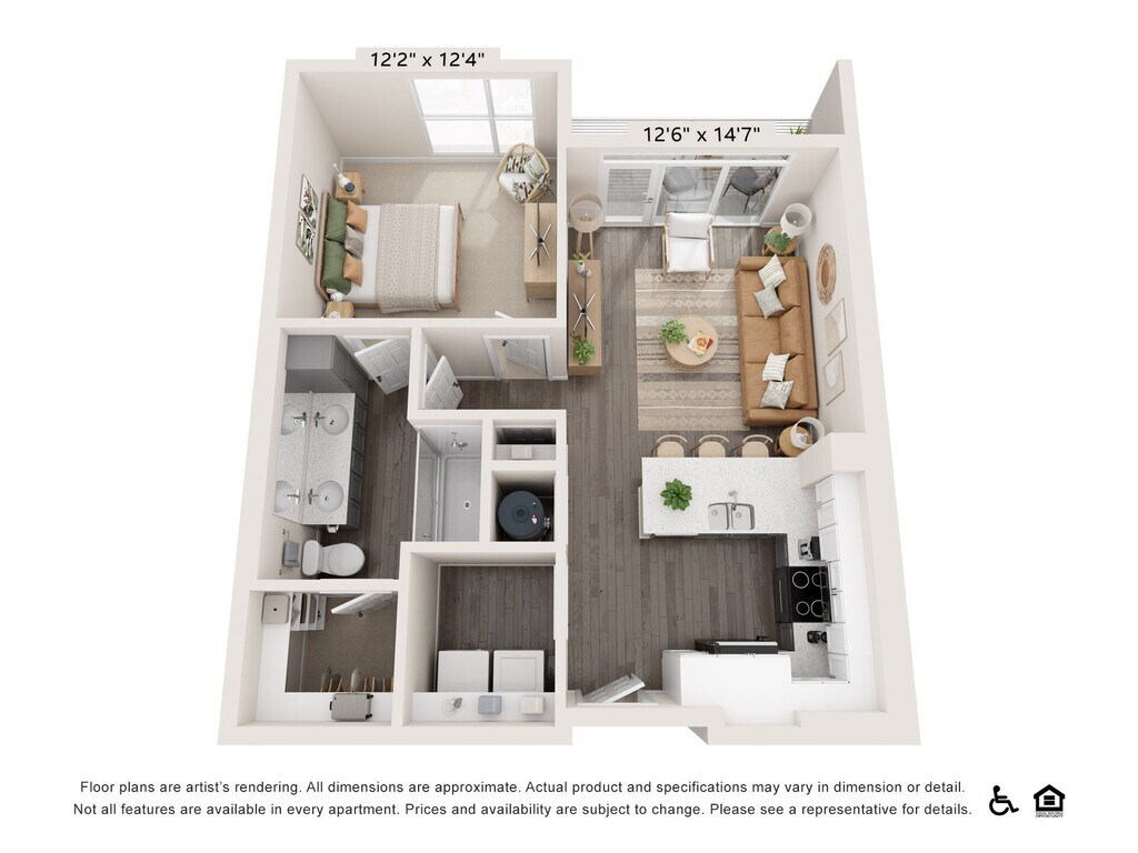 Apartment Model: A2From $1,5801 Bedroom, 1 Bath, 777 sq ftAvailable NowFloor plans are artist's rendering. All dimensions are approximate. Actual product and specifications may vary in dimension or detail. Not all features are available in every rental home. Prices and availability are subject to change. Base rent is based on monthly frequency. Additional fees may apply, such as but not limited to package delivery, trash, water, amenities, etc. Deposits vary. Please see a representative for details.