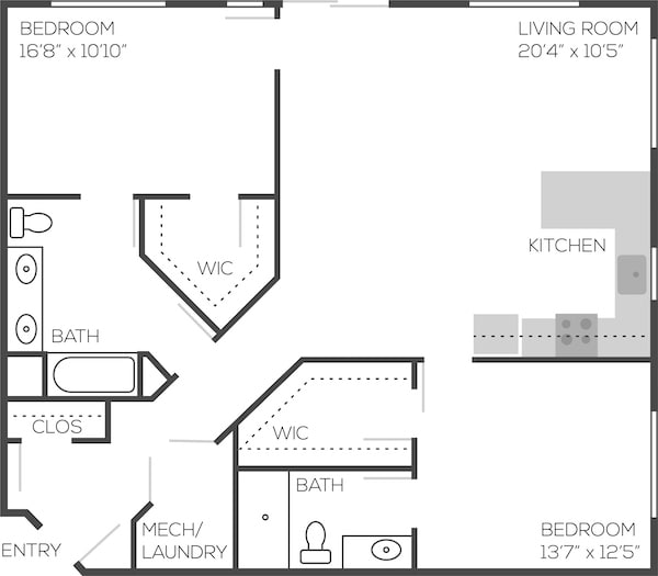Apartment Model: Krohn II2 Bedroom, 2 Bath, 1039 sq ftAvailable Now![]()