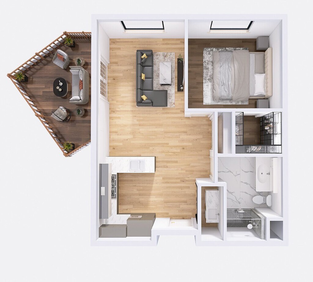 1 Bed, 1 Bath, 716 sq ftModel Gallery