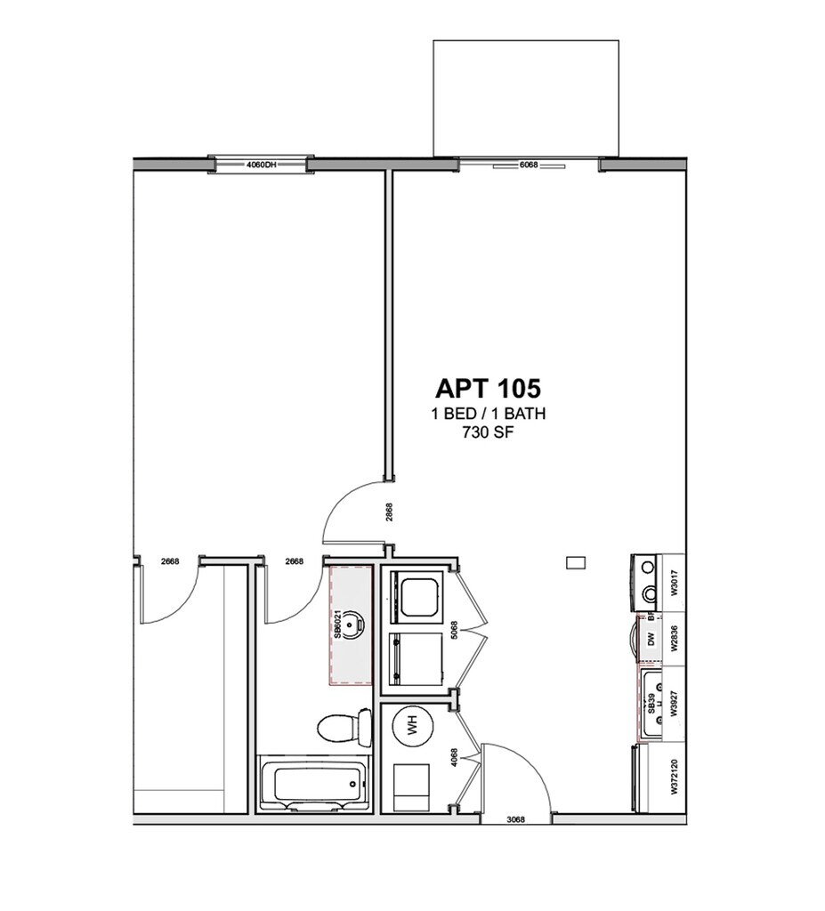 1 Bed 1 Bath - Floorplan 4 Apartment Unit: 101Apartment Model: 1 Bed 1 Bath$1,7501 Bedroom, 1 Bath, 860 sq ftAvailable Now![]()