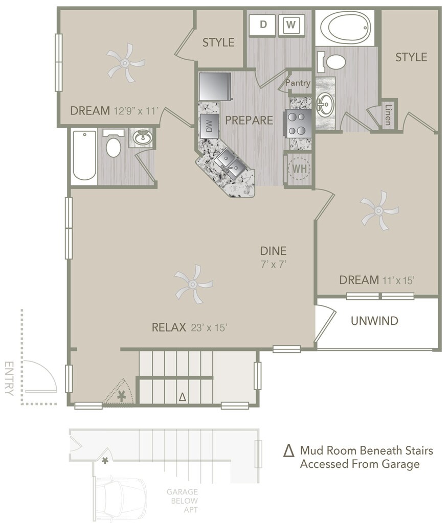 1 Bed, 1 Bath, 667 sq ftModel Gallery