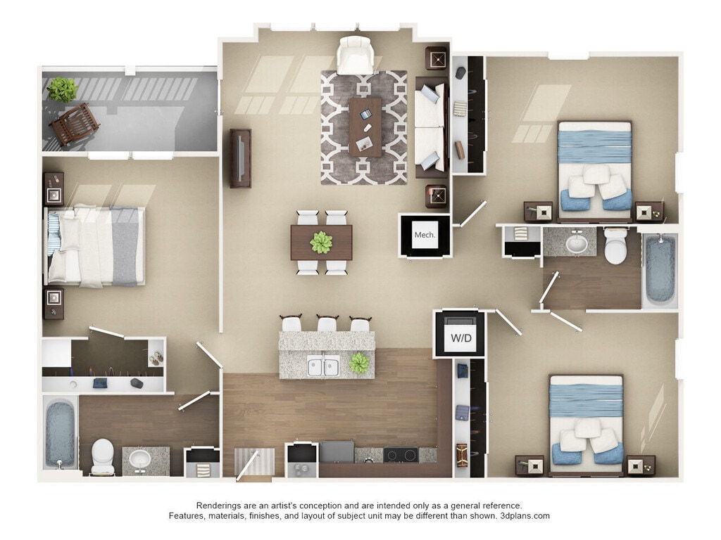 3 Beds, 2 Baths, 1290 sq ftModel Gallery