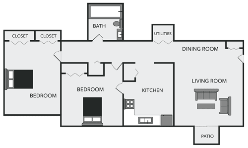 2 Beds, 1 Bath, 900 sq ftAvailable NowModel Gallery