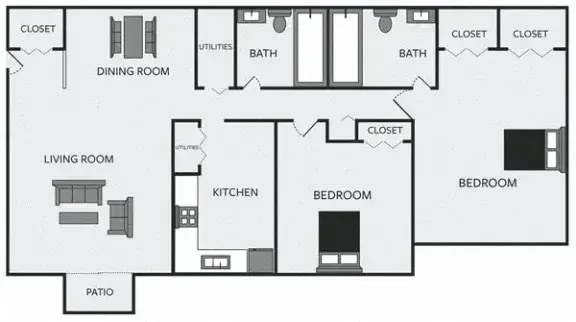 2 Bedroom 2 Bathroom - Floorplan 2 ![]()