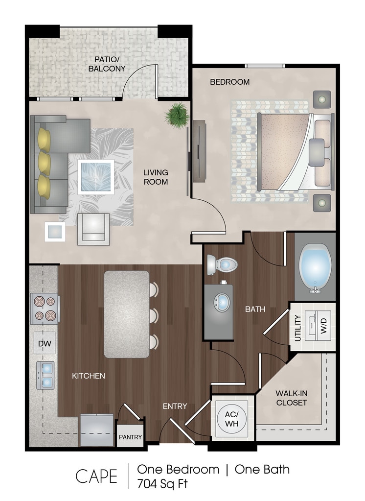 Apartment Model: CapeFrom $1,5201 Bedroom, 1 Bath, 704 sq ftAvailable Now![]()