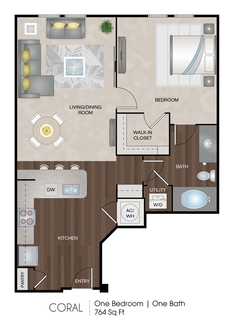 1 Bed, 1 Bath, 764 sq ftAvailable NowModel Gallery