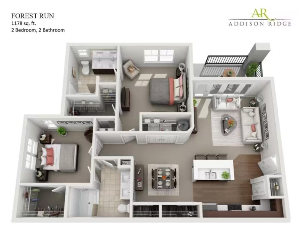 Addison Ridge Apartments offers 1 to 3 Bedroom apartments starting from $1,500 and having 745–1,373 sq ft. Here is the current pricing and availability: