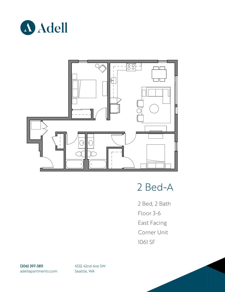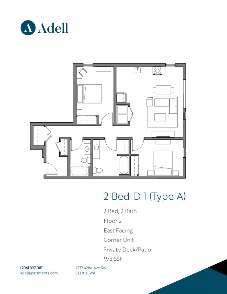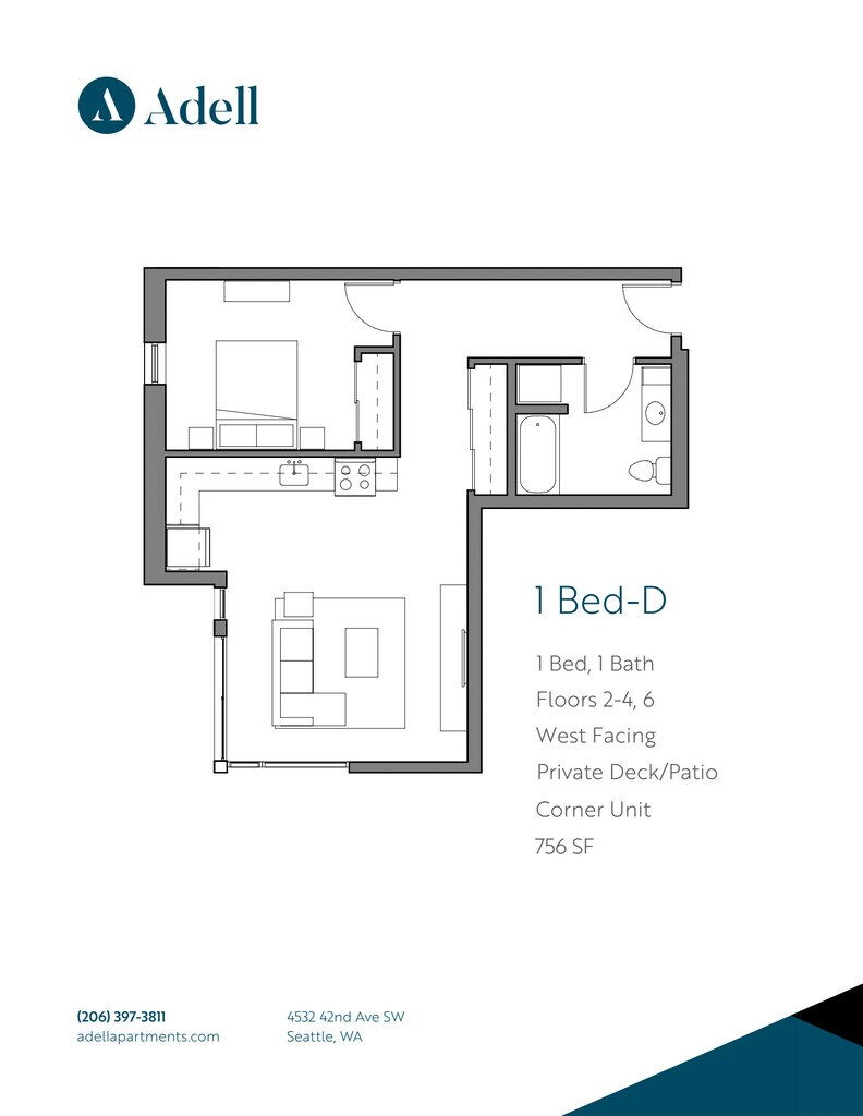 Schedule a Tour! Call/Text or **1 Month Free** Welcome to Adell Apartments, where contemporary living meets the essence of community in the heart of West Seattle. Our prime location allows you to bask in the vibrant neighborhood energy nestled within a thriving, homegrown business district. Enjoy the convenience of an impressive Walk Score of 96 as you explore Seattle's wide-ranging metropolitan experience. Adell Apartments showcases the perfect blend of modern design and convenience. With in-unit washer/dryers, secure garage parking, optional storage, and top-notch amenities, including a rooftop deck with breathtaking water and city views, a BBQ, and a firepit. You'll appreciate the sleek touches of stainless steel appliances, quartz countertops, and abundant natural lighting. Peak Living Property Services professionally manage this Community and offers professional 24/7 emergency maintenance. For other vacancies and information, visit . We do not accept Comprehensive Reusable Tenant Screening Reports as defined by and pursuant to RCW 59.18. Equal Housing Opportunity. Income verification must be provided showing a gross monthly income of 3x the monthly rent, a minimum credit score of 650, and no history of rental eviction.