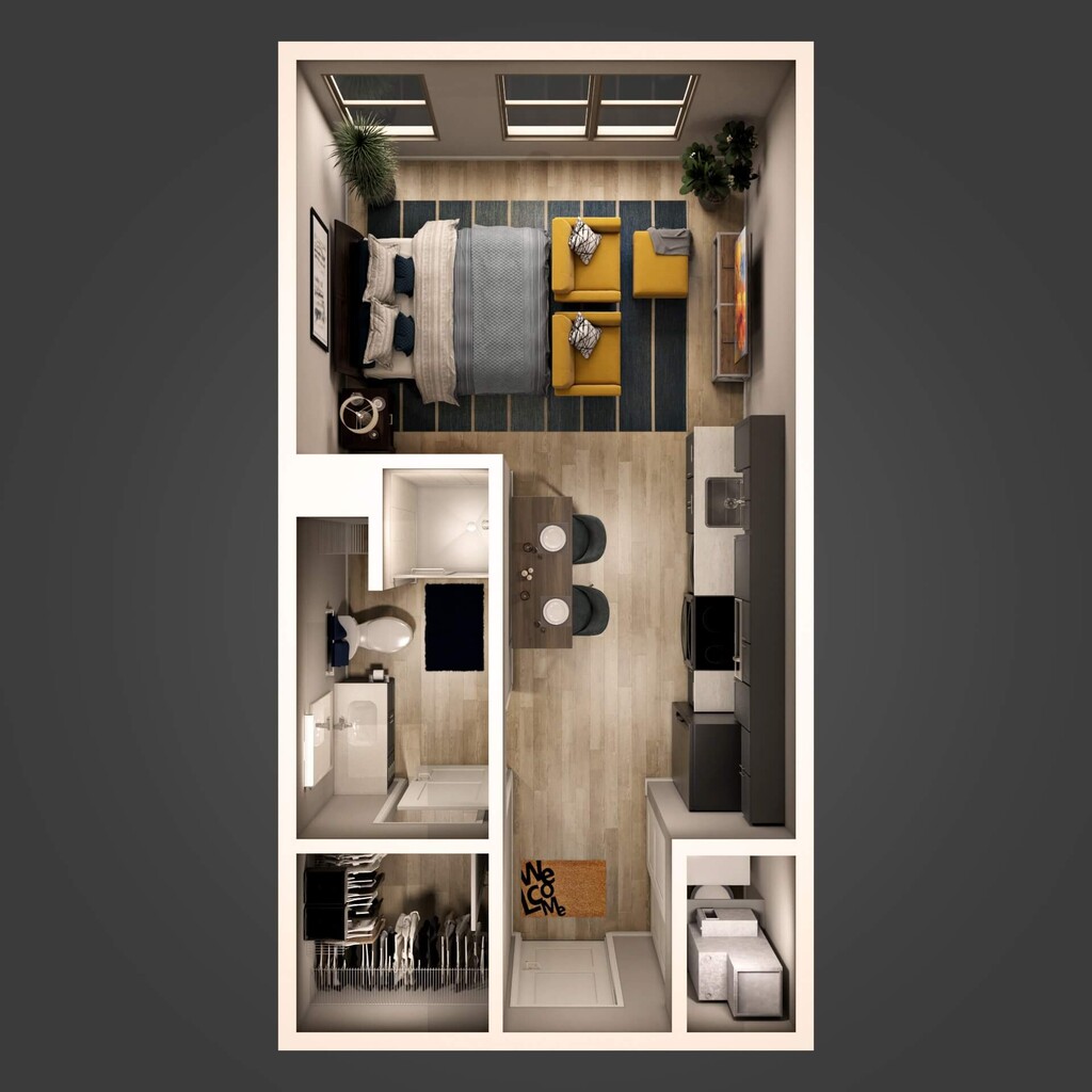 Studio, 1 Bath, 419 sq ftAvailable March 7, 2026Model Gallery
