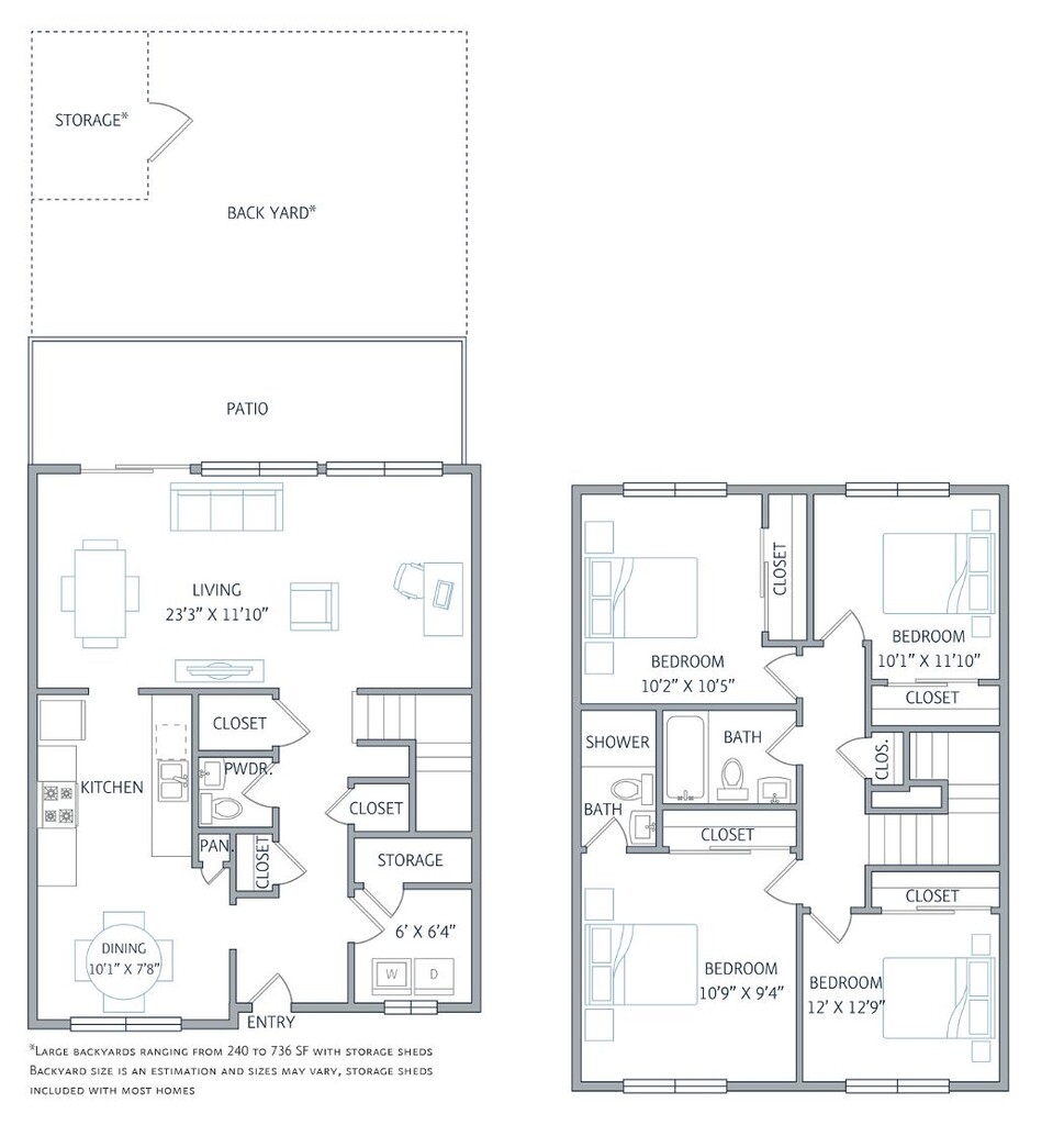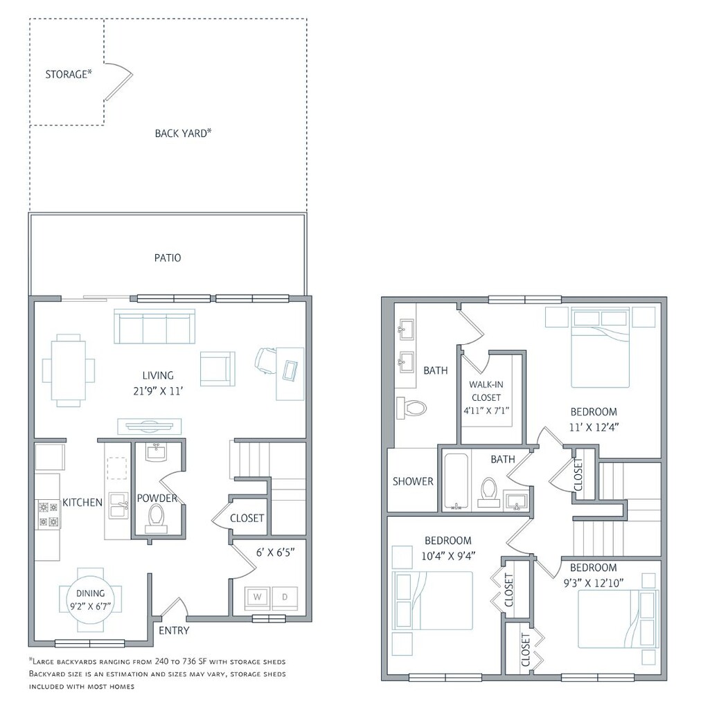 - Two-Story, 3 & 4 Bedroom Townhomes