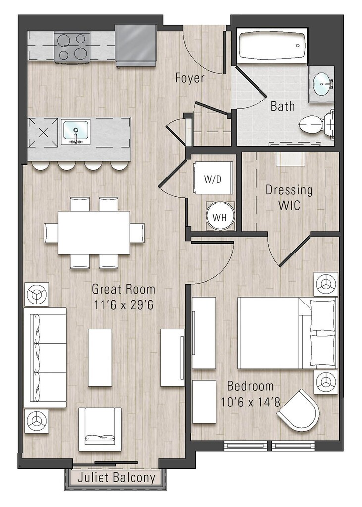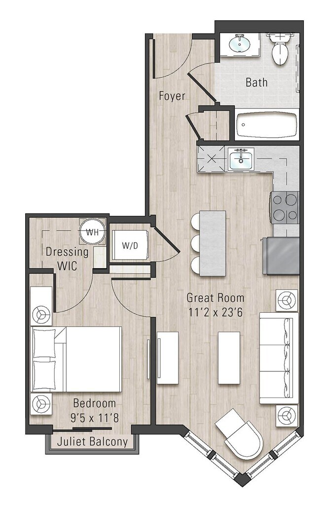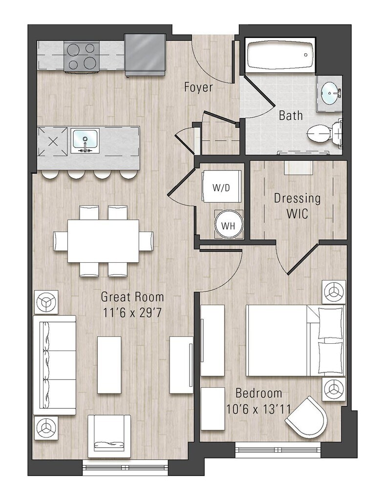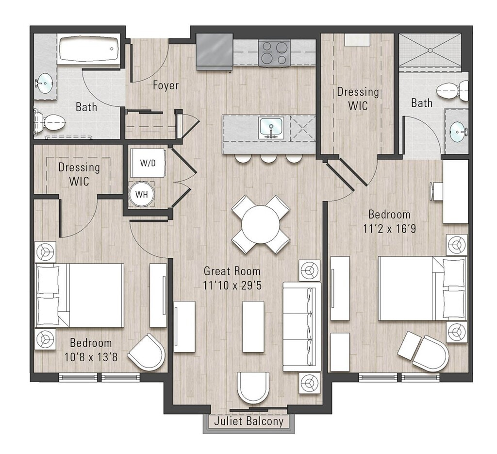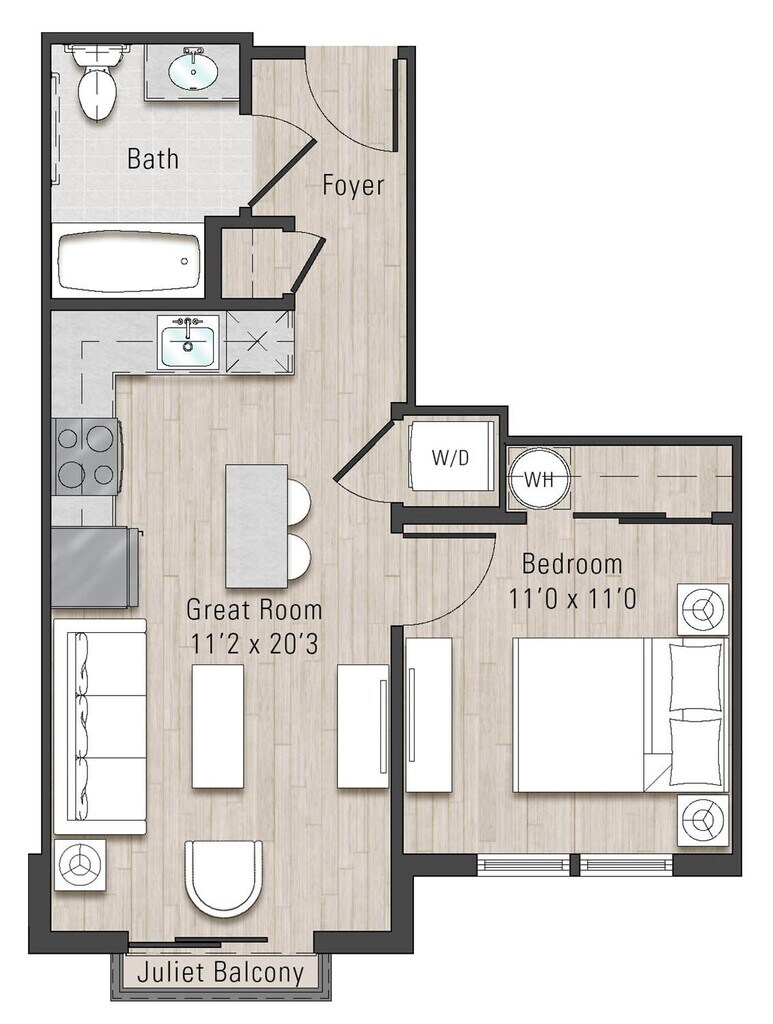 1 Bed, 1 Bath, 695 sq ftAvailable NowModel Gallery
