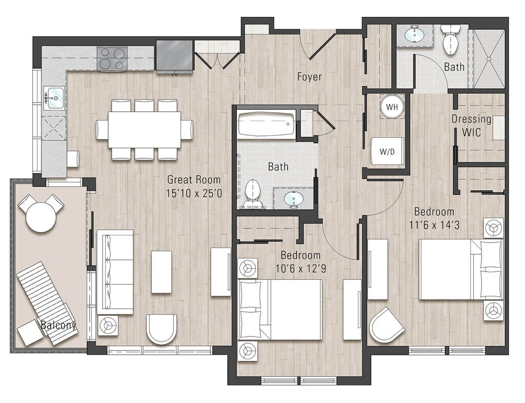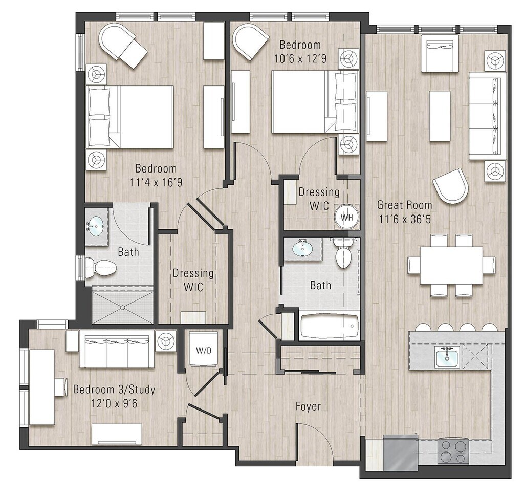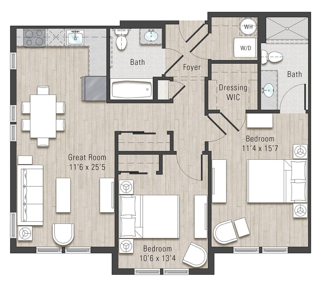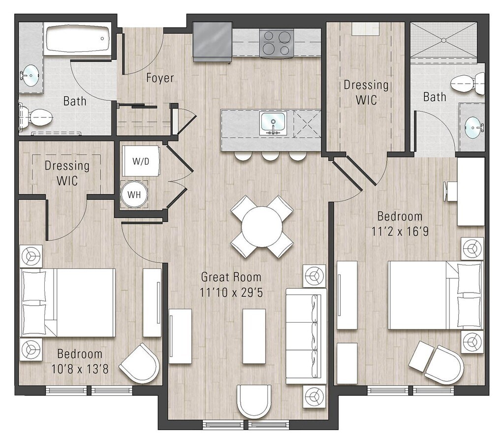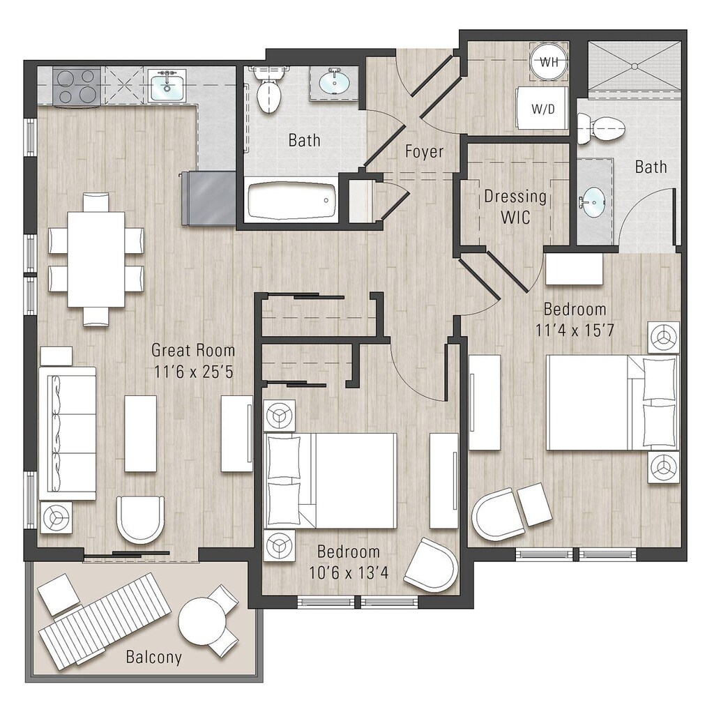 1 Bed, 1 Bath, 695 sq ftAvailable NowModel Gallery