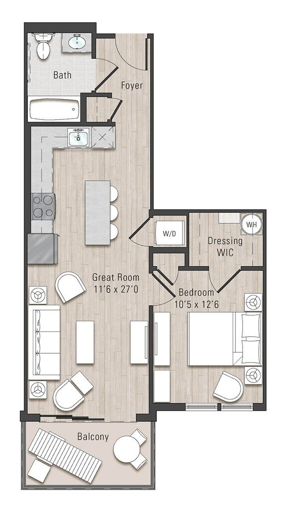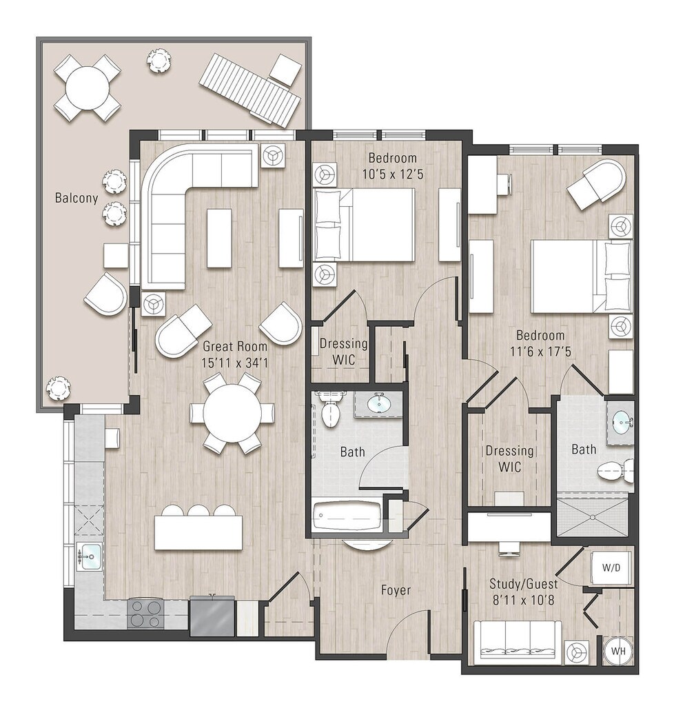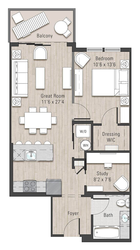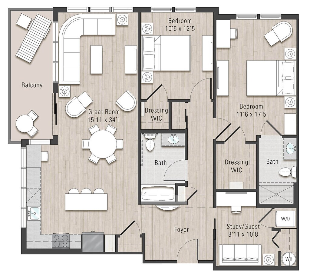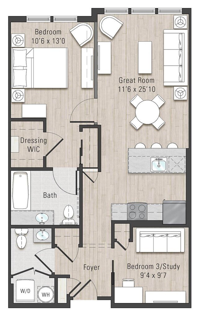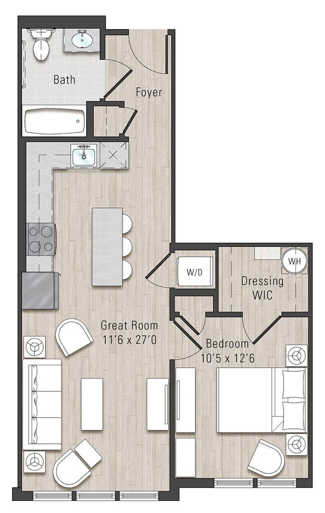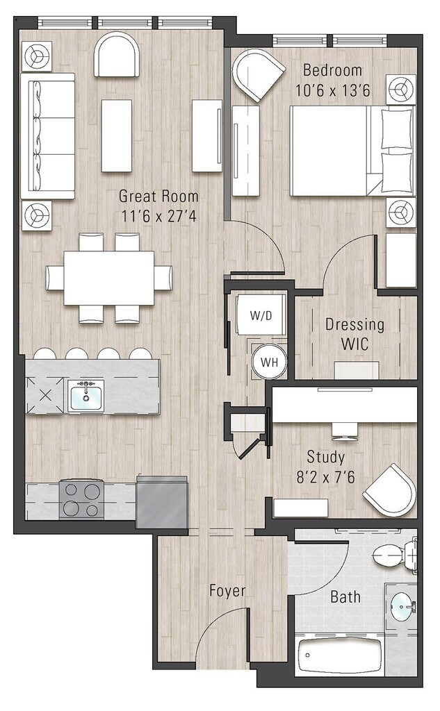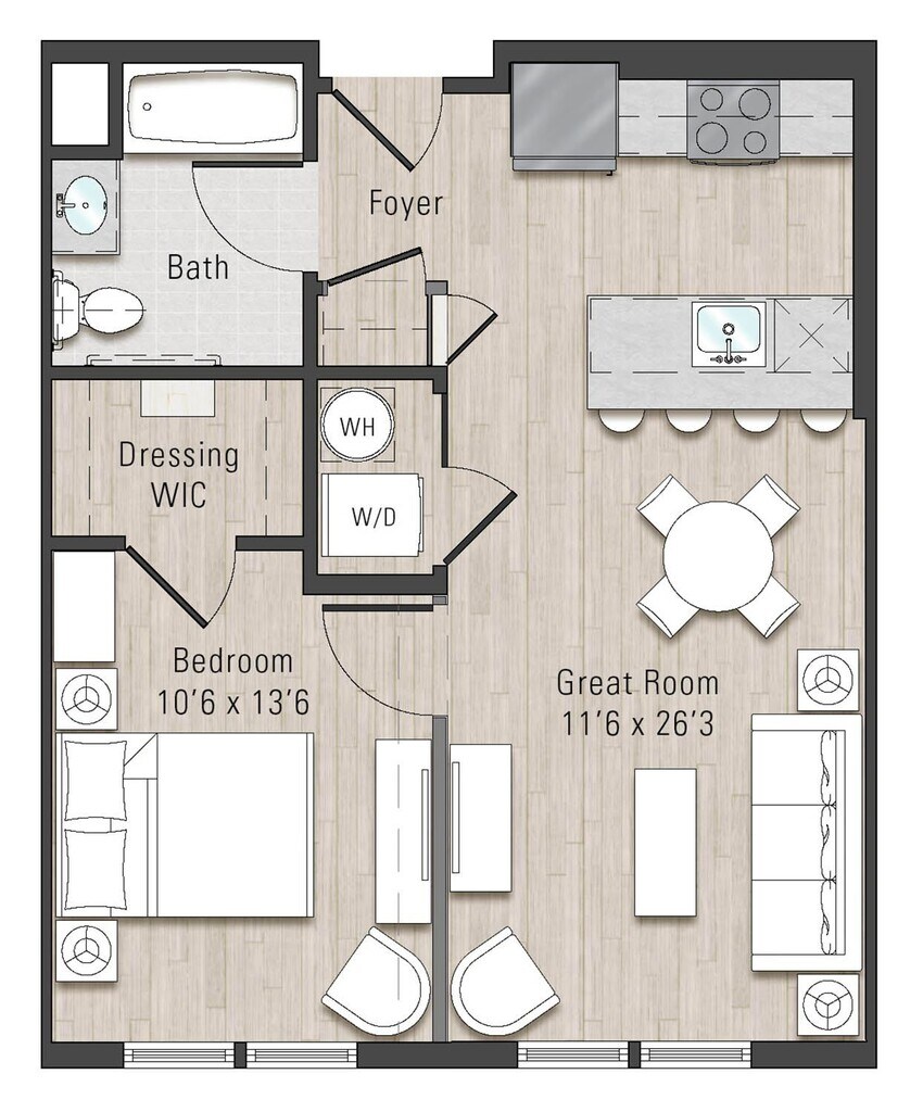 Studio, 1 Bath, 610 sq ftLargest StudioThis is the largest Studio at this PropertyModel Gallery