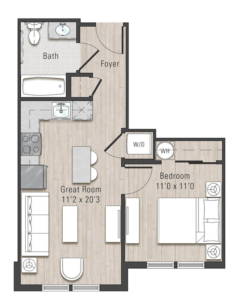 Studio, 1 Bath, 495 sq ftModel Gallery