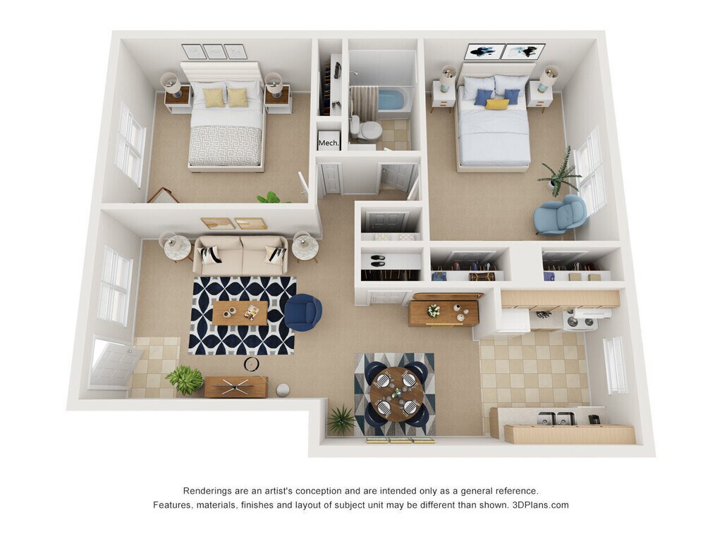 Apartment Model: The Lieutenant$1,2802 Bedroom, 1 Bath, 842 sq ftAvailable NowFloorplansPhotos3D Tours![]()