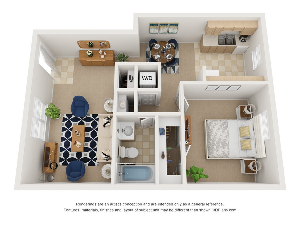 Apartment Model: The Captain$1,0301 Bedroom, 1 Bath, 700 sq ftAvailable July 8, 2026Floorplans3D ToursFloor plans are artist's rendering. All dimensions are approximate. Actual product and specifications may vary in dimension or detail. Not all features are available in every rental home. Please see a representative for details.