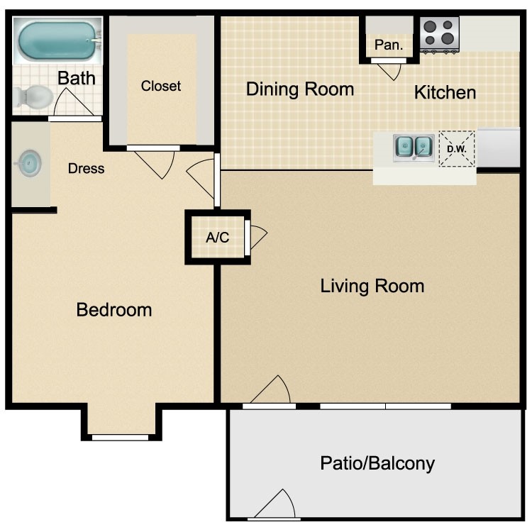 Apartment Model: A - 1-1From $6901 Bedroom, 1 Bath, 622 sq ftAvailable NowFloorplansPhotos![]()