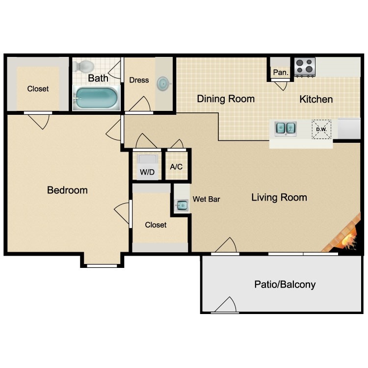 1 Bed, 1 Bath, 622 sq ftAvailable NowModel Gallery
