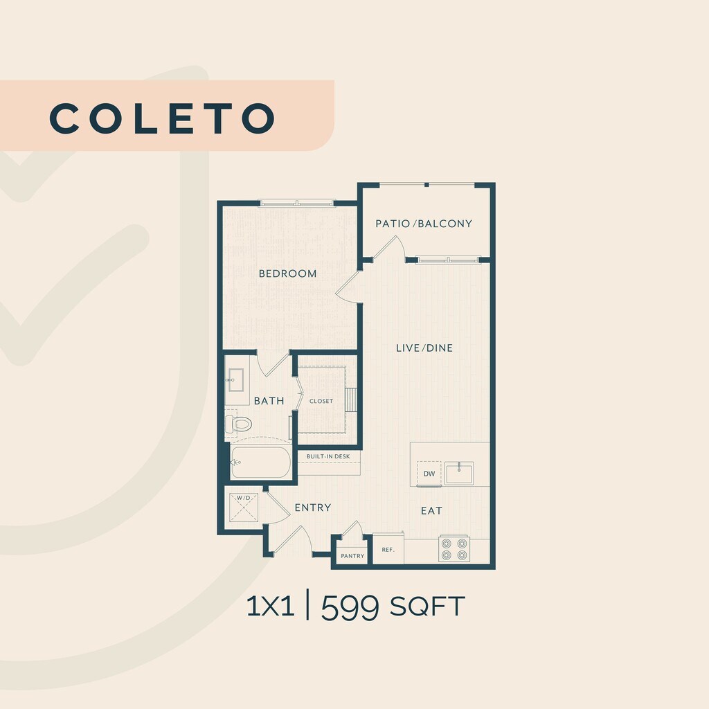 Apartment Model: ColetoFrom $1,3591 Bedroom, 1 Bath, 599 sq ftAvailable NowColeto - Floorplan 1 Apartment Unit: 1203Apartment Model: Coleto$1,3591 Bedroom, 1 Bath, 599 sq ftAvailable NowApartment Unit: 1214Apartment Model: Coleto$1,3591 Bedroom, 1 Bath, 599 sq ftAvailable NowApartment Unit: 3213Apartment Model: Coleto$1,3591 Bedroom, 1 Bath, 599 sq ftAvailable NowColeto - HC