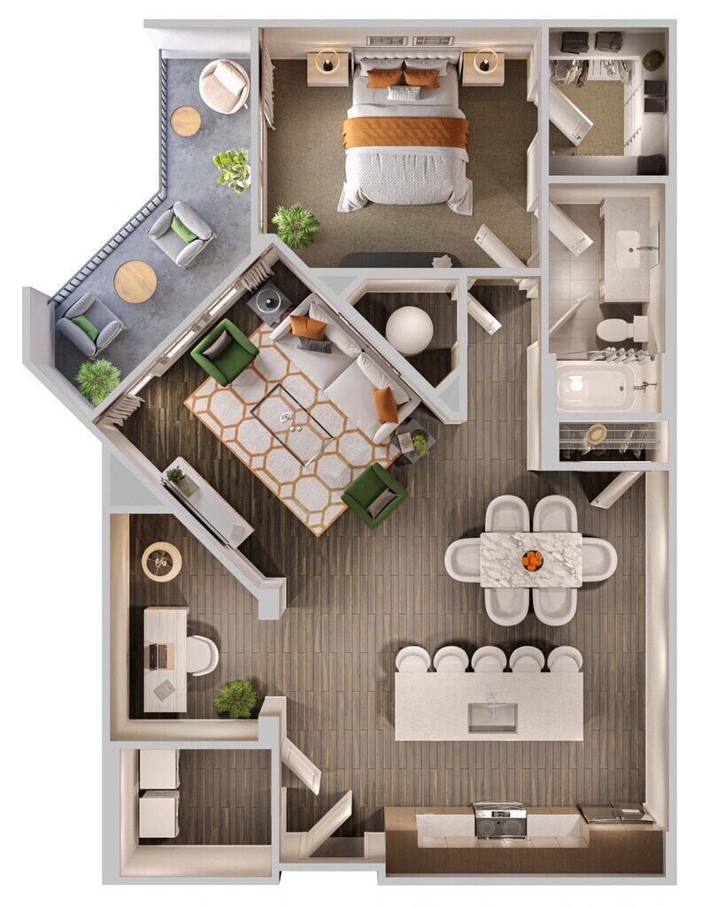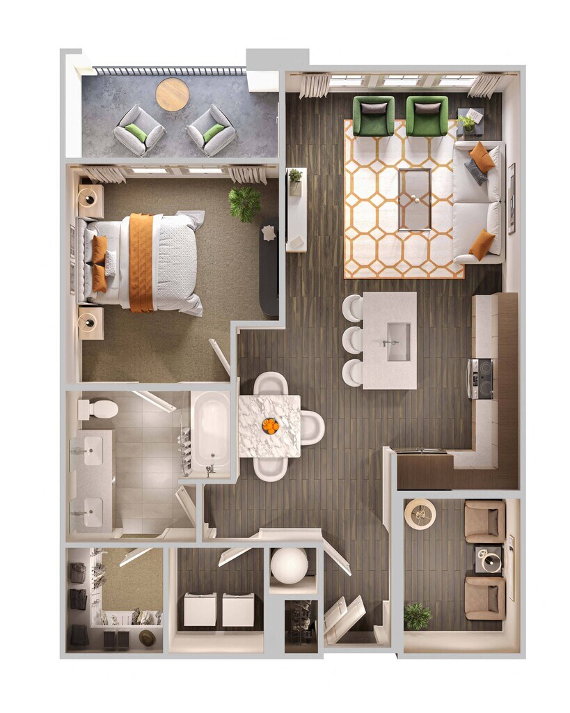 1 Bed, 1 Bath, 747 sq ftAvailable NowModel Gallery