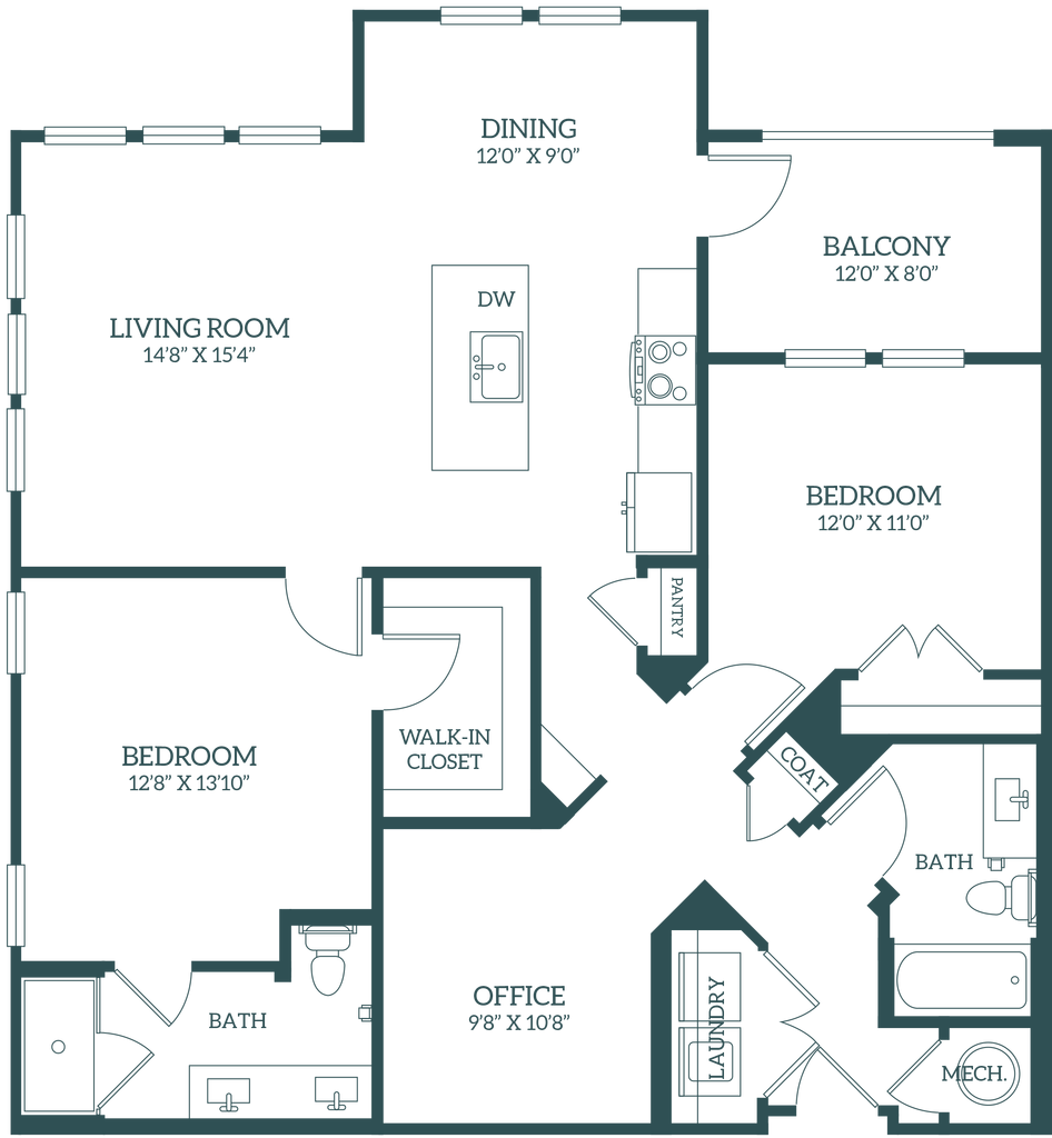 Apartment Model: A2From $1,6151 Bedroom, 1 Bath, 823 sq ftAvailable Now![]()