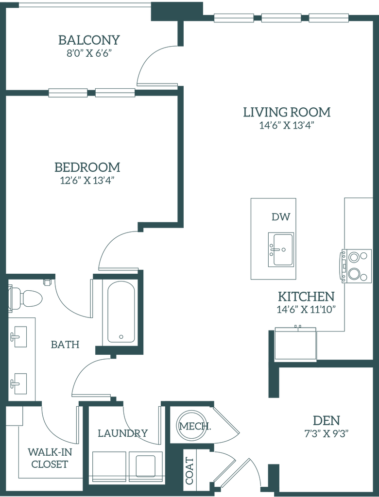 1 Bed, 1 Bath, 823 sq ftAvailable NowModel Gallery