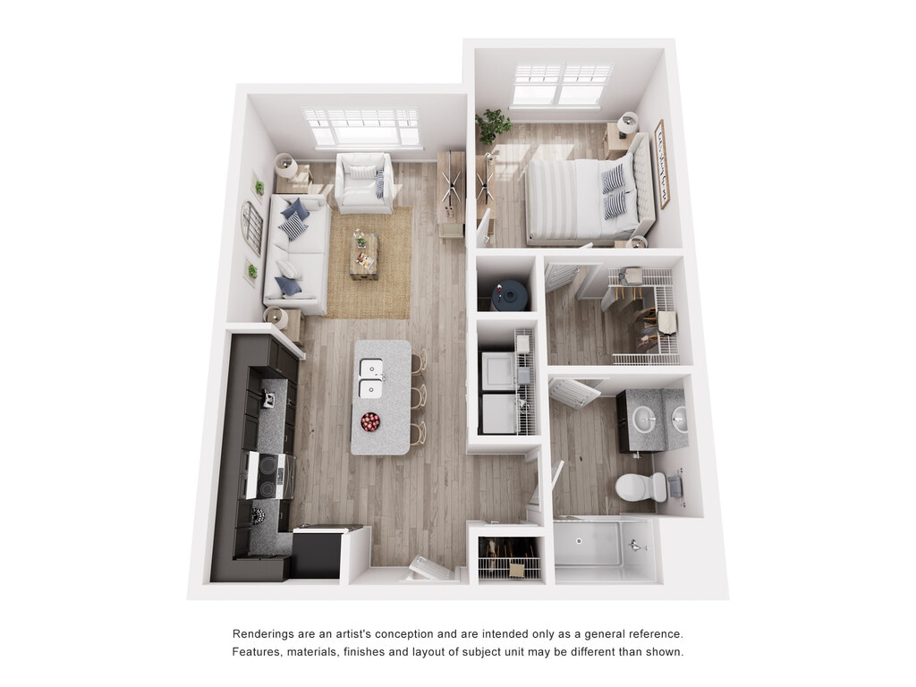 1 Bed, 1 Bath, 677 sq ftAvailable February 7, 2026Model Gallery