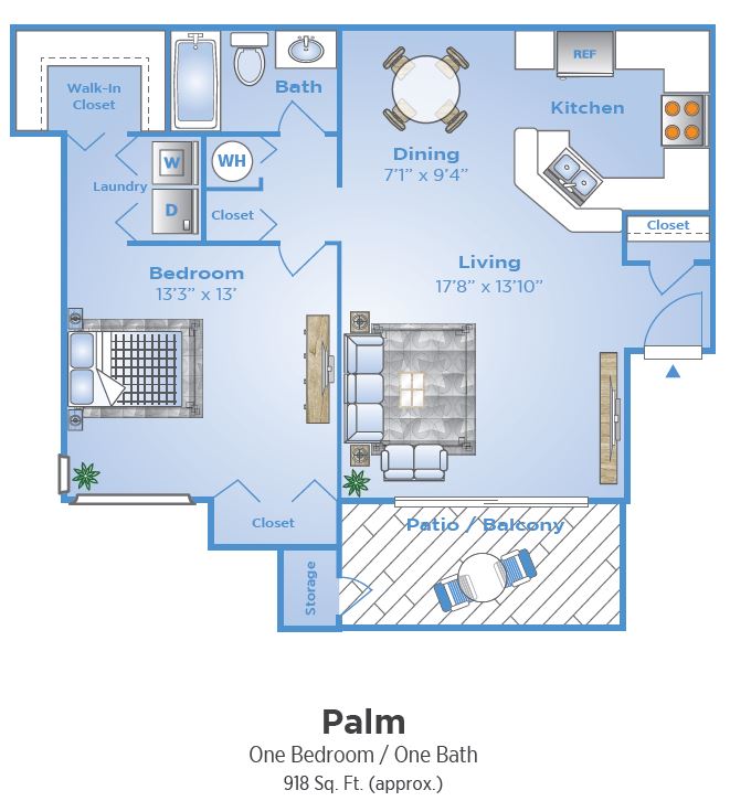 Apartment Model: PalmFrom $1,5991 Bedroom, 1 Bath, 846 sq ftAvailable Now![]()
