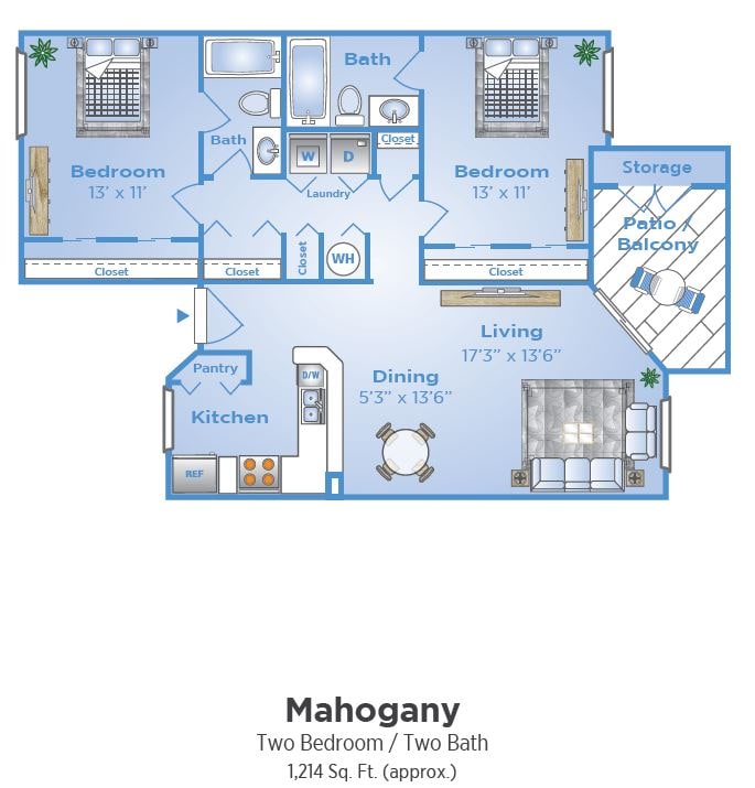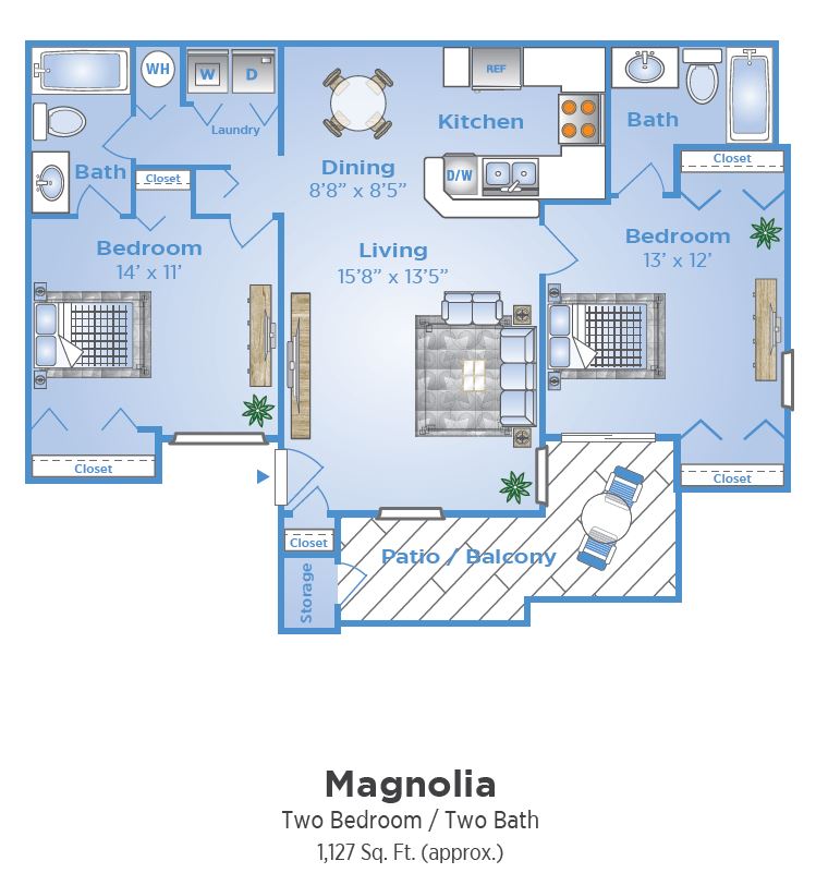 Apartment Model: MagnoliaFrom $1,8992 Bedroom, 2 Bath, 1037 sq ftAvailable Now![]()