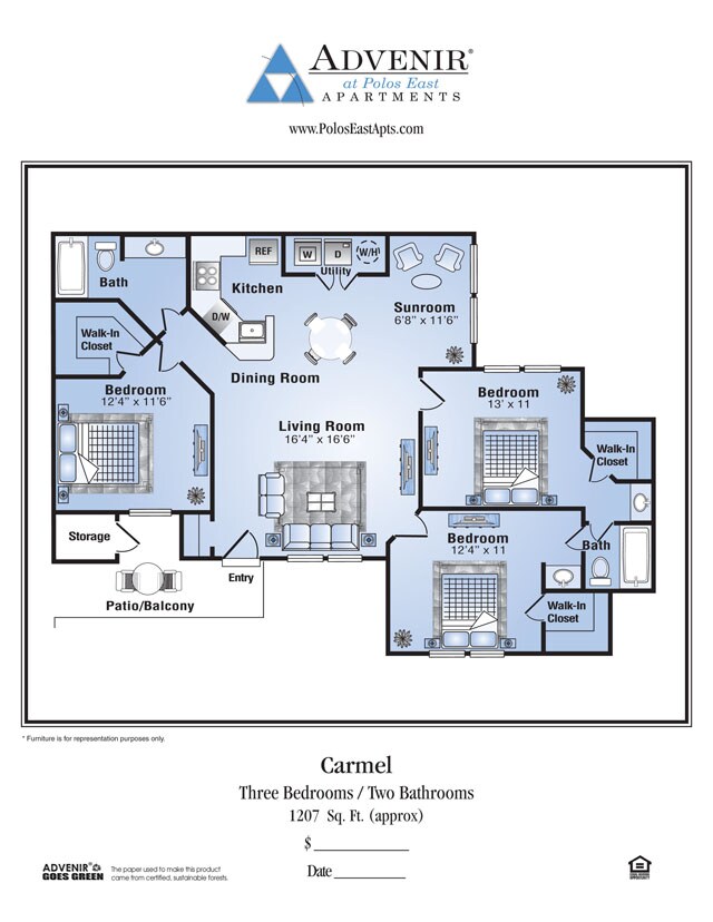 1 Bedroom to 3 Bedroom Apartments at Advenir at Polos East currently range from $1,404 to $2,259