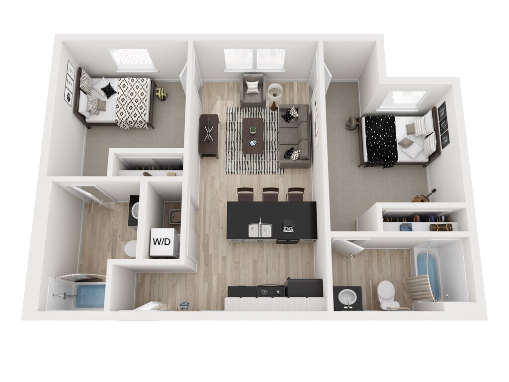 - 2 Bedrooms- Floorplan B3- From $7102 Beds, 2 Baths, 772 sq ftAvailable Now- Availability Details- Price - Availability Date - Unit - Sq Ft - $739/person - Available Now - Private - 350 - $1,478/person - Available Now - Private Apartment - 350 - $739/person - Available Now - Private - 350 - Model Amenities and Features- Features- Air Conditioning