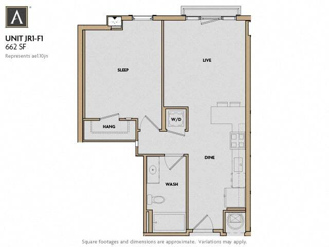 Junior 1 Bedroom - Floorplan 10 Apartment Unit: N1712Apartment Model: Junior 1 Bedroom1 Bedroom, 1 Bath, 662 sq ftAvailable Now![]()
